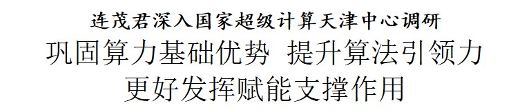 来到国家超级计算天津中心,连茂君仔细察看算力融合一体机、网络芯片、医疗大模型等创新成果展示,详细了解成果转化应用情况。在随后召开的座谈会上,连茂君对国家超级计算天津中心改革创新发展取得的成绩给予充分肯定,他强调,要清醒认识新一轮科技革命和产业变革带来的机遇与挑战,进一步增强紧迫感、使命感和责任感,抢抓人工智能发展机遇,认真谋划“十五五”发展规划和未来长期发展战略,持续巩固提升算力优势,更好发挥赋能支撑作用。要充分发挥国之重器功能作用,服务保障好国家重大工程、重大项目、重大任务建设,为国家高水平科技自立自强作出新的贡献。要坚持自主可控要求,一体化推进算力、算法、算器建设应用,持续巩固提升算力“底座”,探索推动超智融合、量超融合技术发展,积极推广与超算平台互联互通的算力融合一体机,打造领先的高性能计算应用中心。