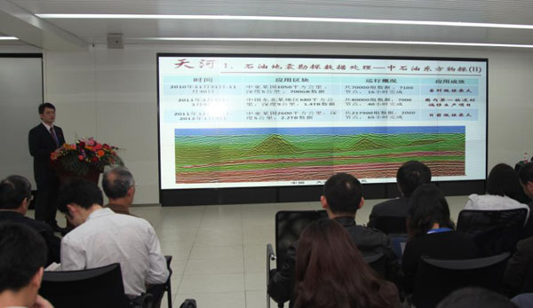 中石油东方地球物理公司工作人员介绍应用成果 华大基因工作人员介绍应用成果