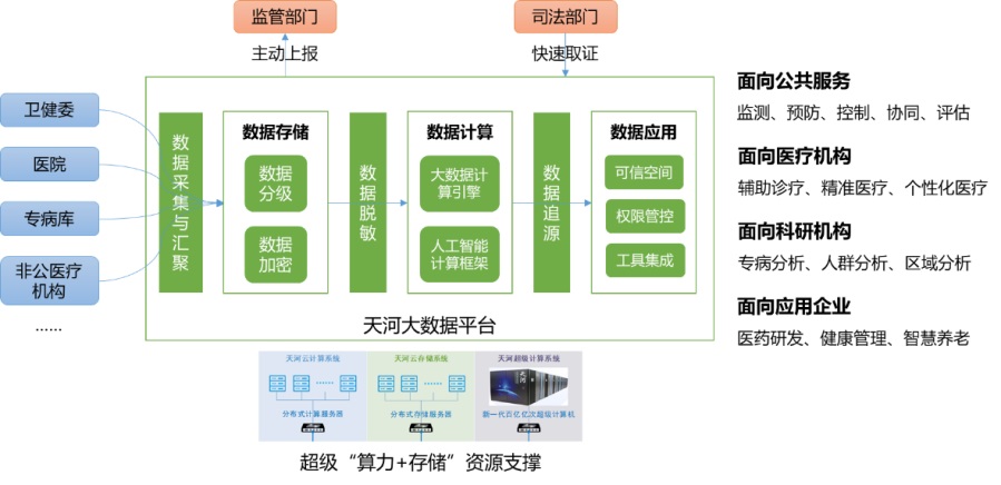 当前数字经济已经成为我国经济的重要组成部分,数字经济成为经济发展新动力和高质量发展新引擎。在数字经济时代,“数据”是关键生产要素,“算力”是核心基础能力。天津超算中心部署有我国首台千万亿次超级计算机系统——“天河一号”,正在推动新一代E级超级计算机的研制与部署,具有强大的“算力”基础。同时,作为新基建建设的高等级(A级)数据中心也在天津超算中心建成,具备了承载海量数据存储能力。